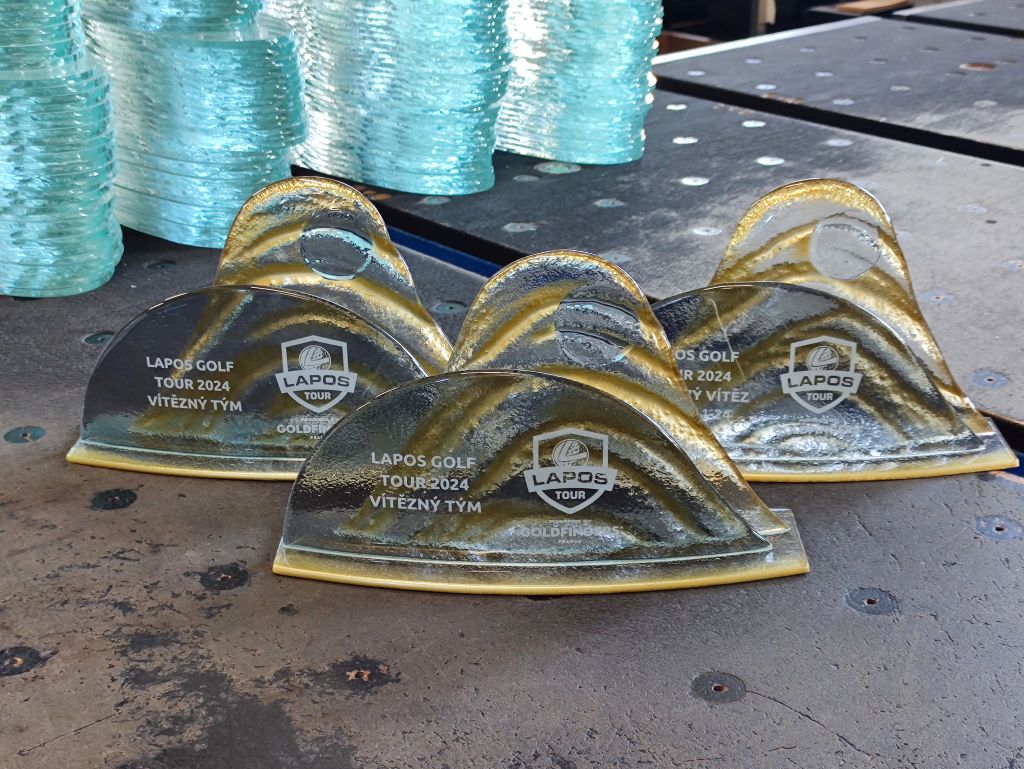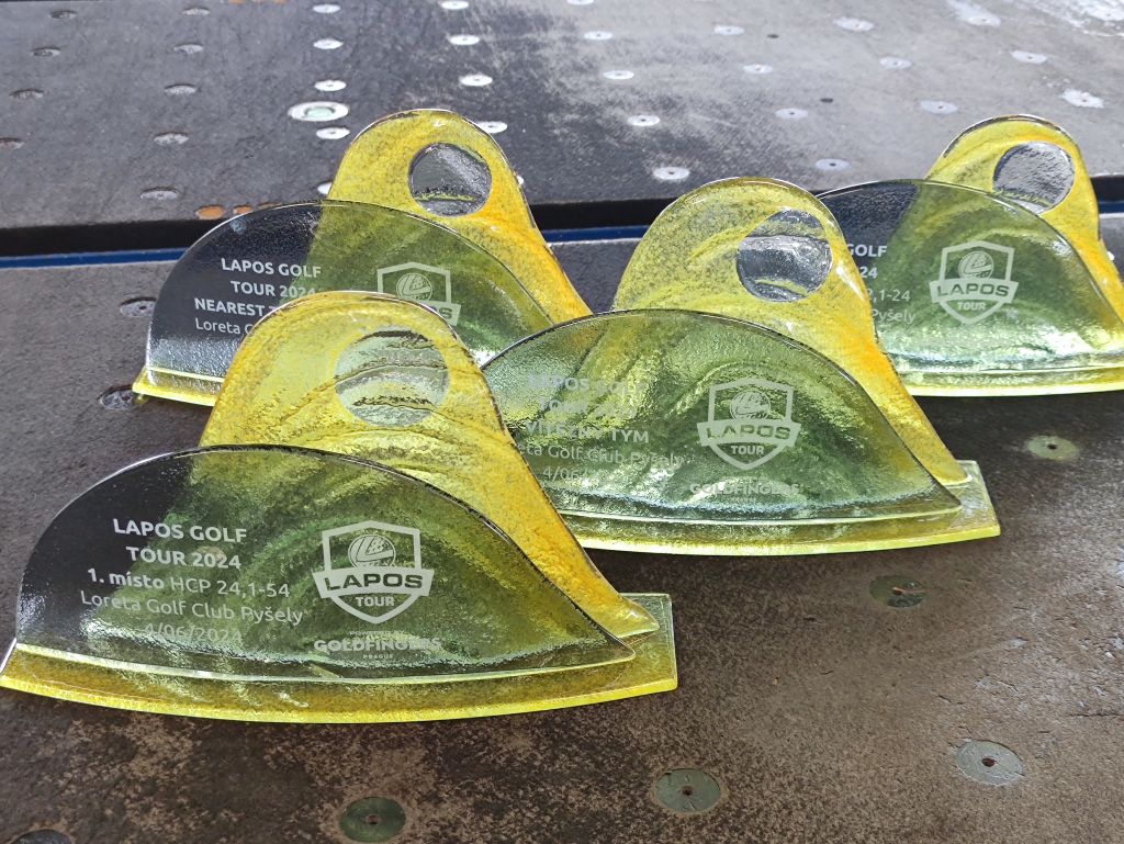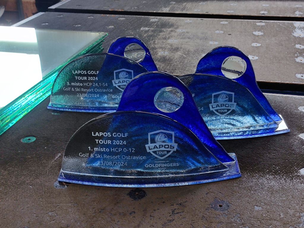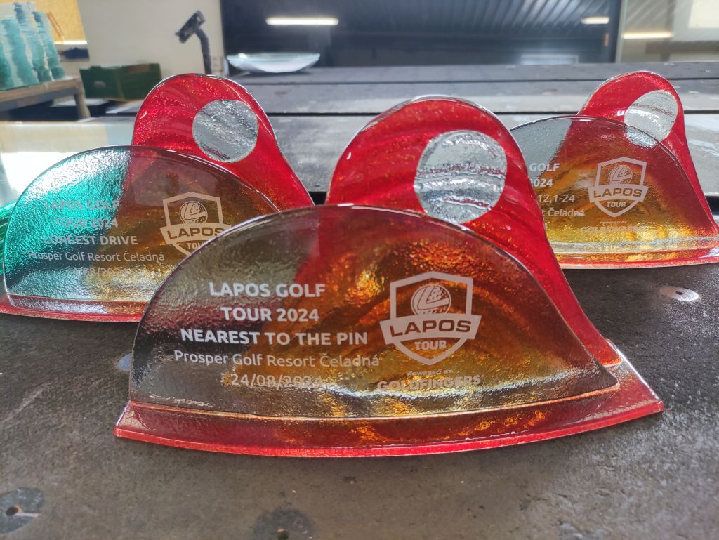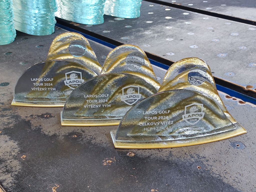 Skleněná sada trofejí na golfový turnaj Lapos 2024.
