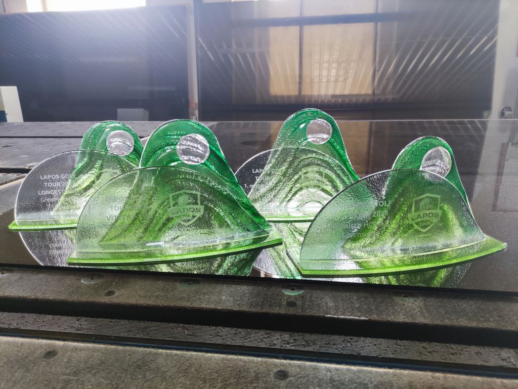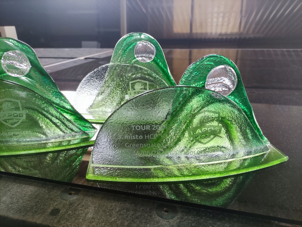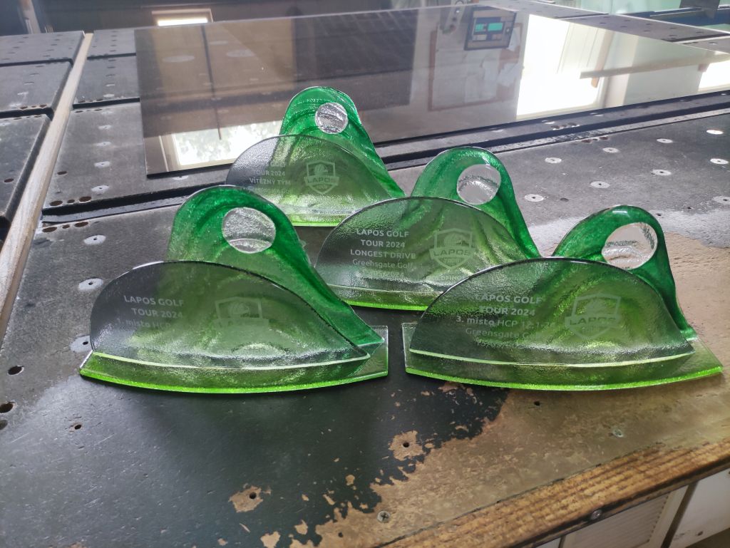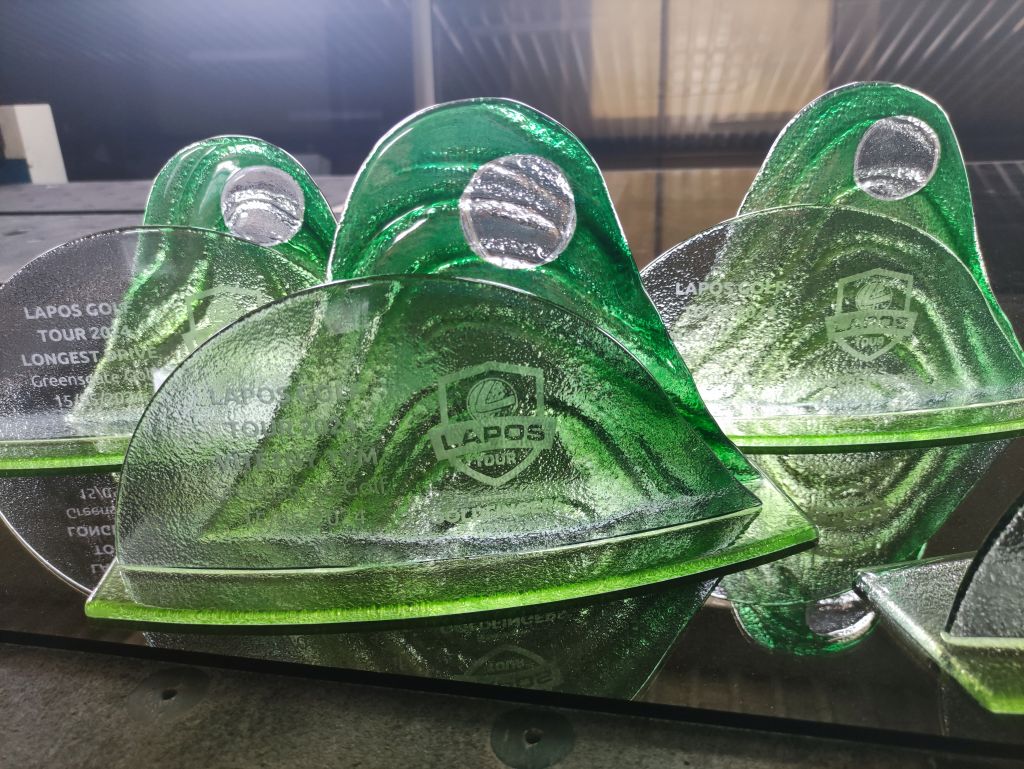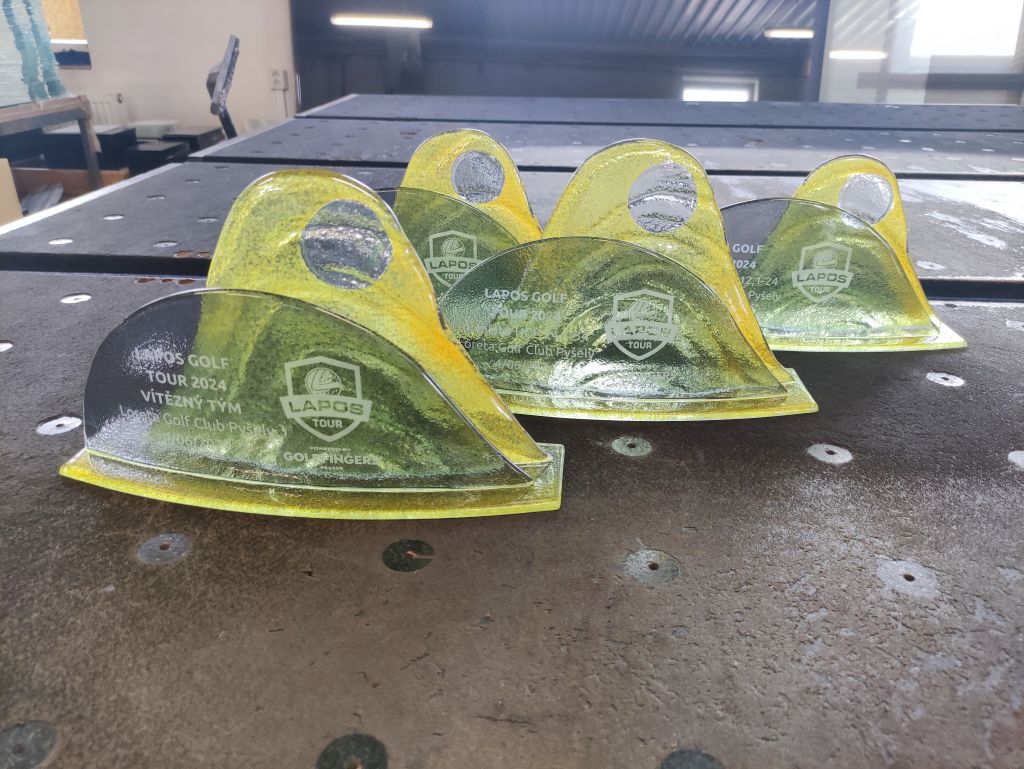 Skleněná sada trofejí na golfový turnaj Lapos 2024.